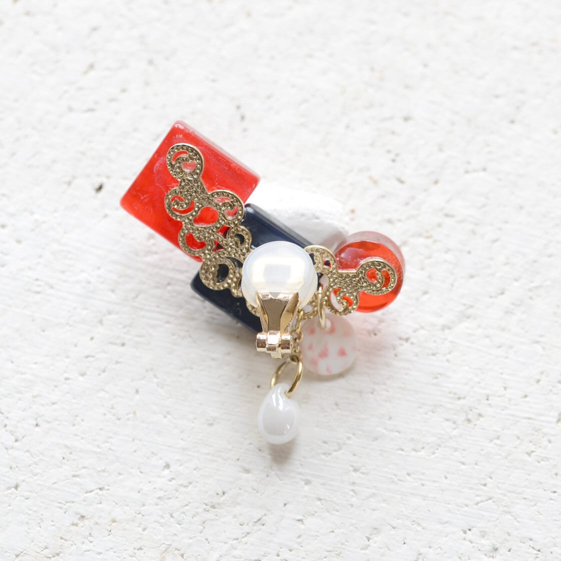 片耳ちゃんイヤーカフ(イヤリング) 大人っぽさの中に潜んだ甘めな雰囲気♡ 上品すぎないコーデ、にしたい日におすすめです。 内容:片耳1点 サイズ:約3.5×3.8cm 重さ:約4g 素材:アセテート・真鍮・シェル・ガラス