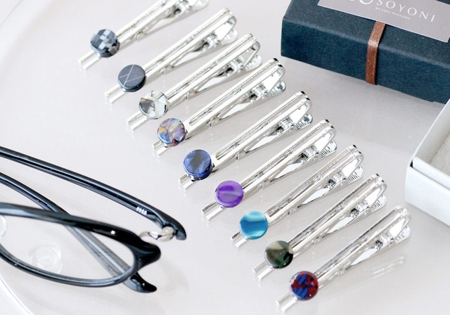 [ 鯖江めがね素材を使ったネクタイピンです ]