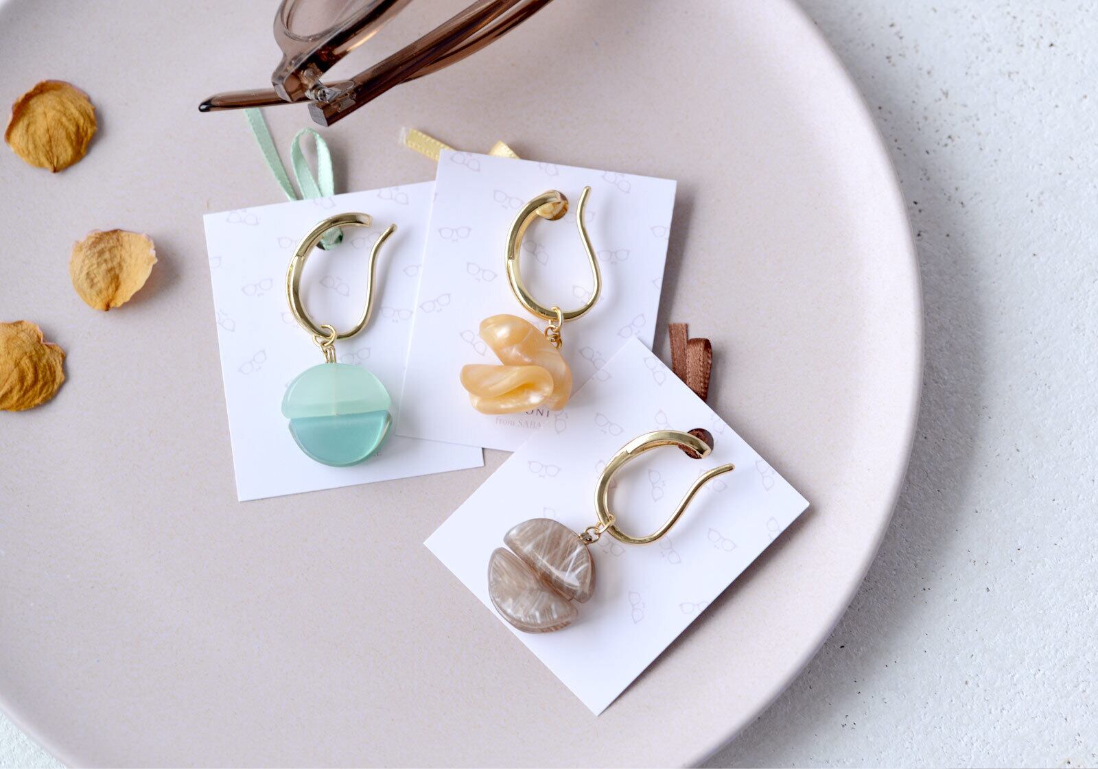 故郷である鯖江市のめがね素材で装飾品を作っています。