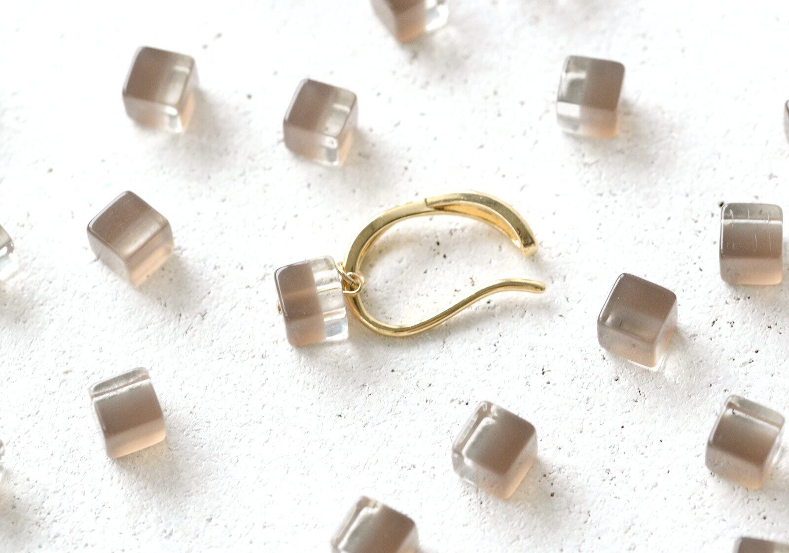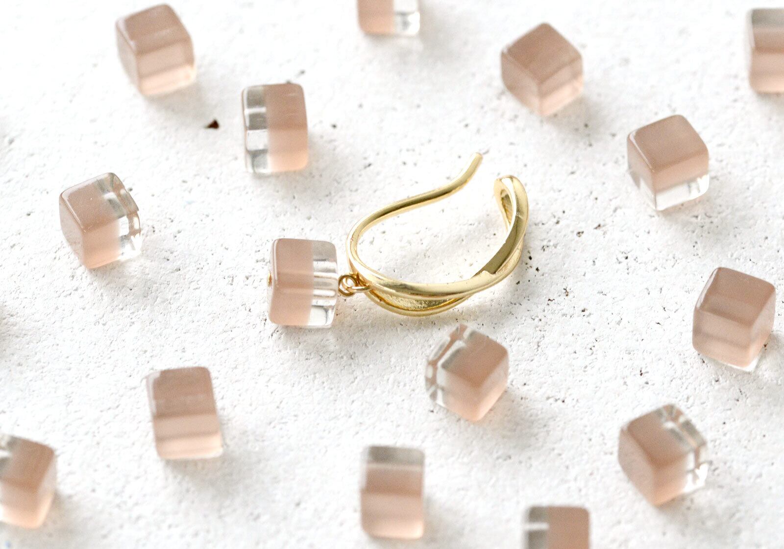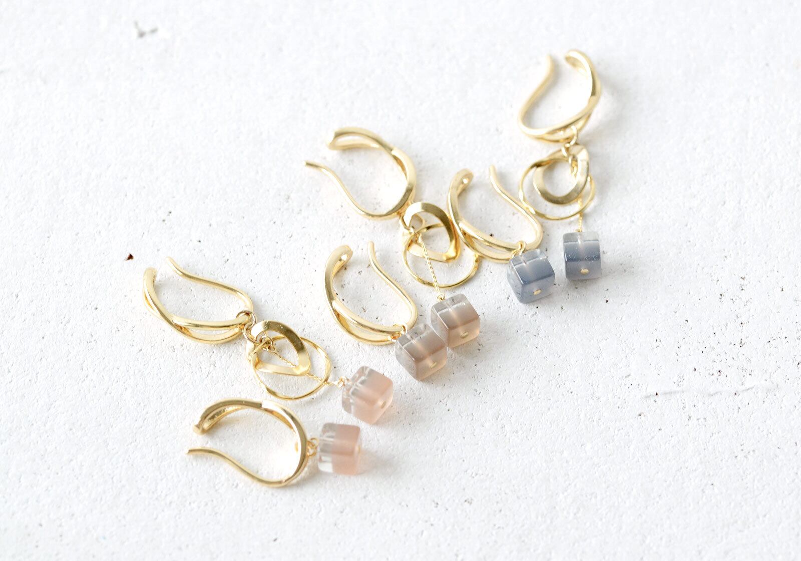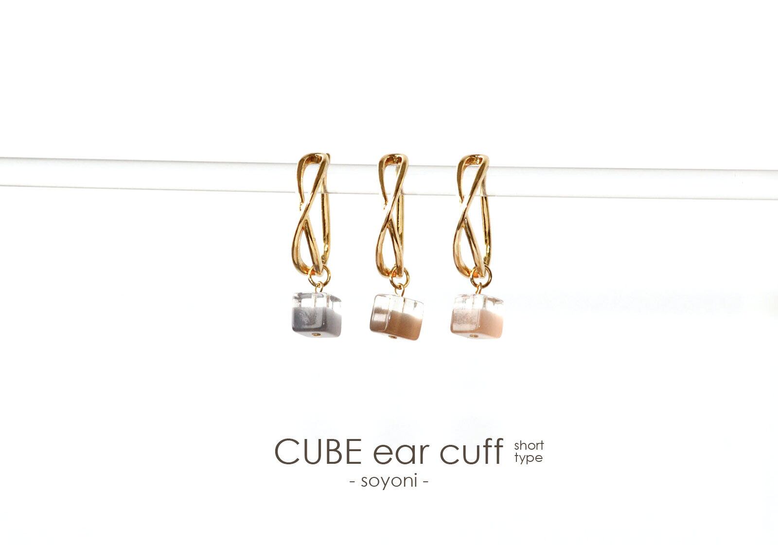 キューブの揺れるイヤーカフ - くすみカラー - (ec011)
