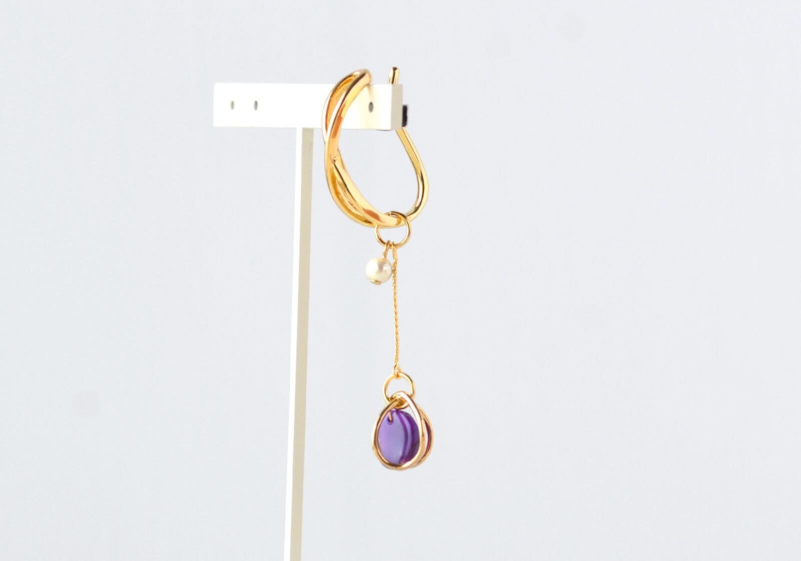 一粒の揺れるイヤーカフ - シェルパープル -(ec103_)